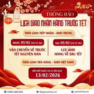 Yến China Logistics tự hào là công ty nhập hàng Trung Quốc uy tín, dẫn đầu trong lĩnh vực nhập khẩu và vận chuyển hàng Trung – Việt. Lấy chữ “Tín” làm tôn chỉ hoạt động, chúng tôi cam kết cung cấp dịch vụ nhập hàng nội địa Trung chất lượng, giá nhập cạnh tranh, vận chuyển siêu tốc.