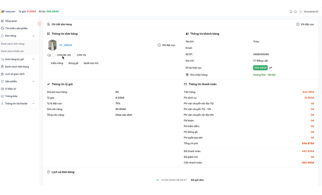 Hướng dẫn đặt hàng bằng tiện ích của Yến China Logistics từ A – Z